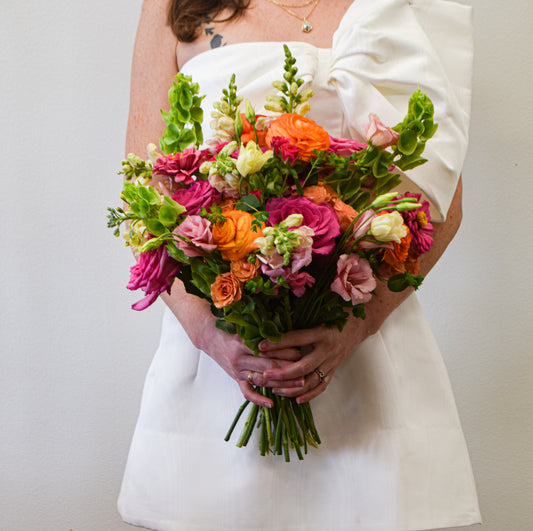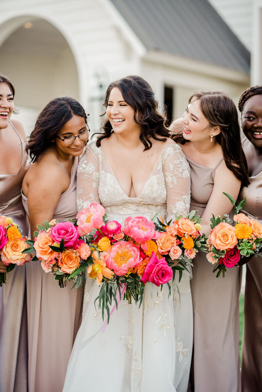 Our signature collection in our signature style. A bright and fun color palette of poppy pinks, coral, oranges and yellows. This one is sure to bring a fun and happy feel to your entire day and every picture, for years to come.